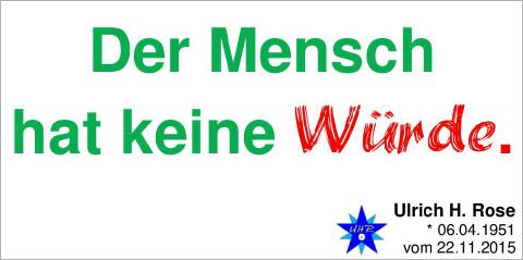 Der Mensch hat keine Würde! .. Spruch von Ulrich H. Rose vom 22.11.2015