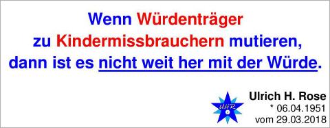 Wenn Würdenträger zu Kindermissbrauchern ... Wenn Würdenträger zu Kindermissbrauchern mutieren, dann ist es nicht weit her mit der Würde. Spruch von Ulrich H. Rose