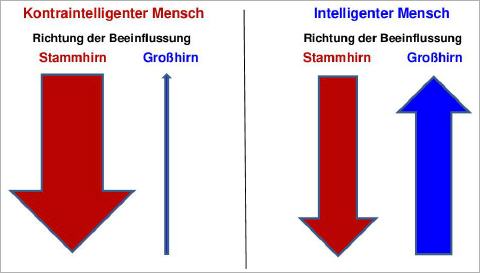 Siehe im nächsten Bild die Beeinflussungsrichtungen. Die Dominanz liegt eindeutig beim Stammhirn.