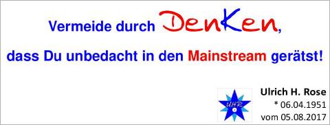 Vermeide durch DenKen, dass ... Vermeide durch DenKen, dass Du unbedacht in den Mainstream gerätst. Spruch von Ulrich H. Rose vom 05.08.2017